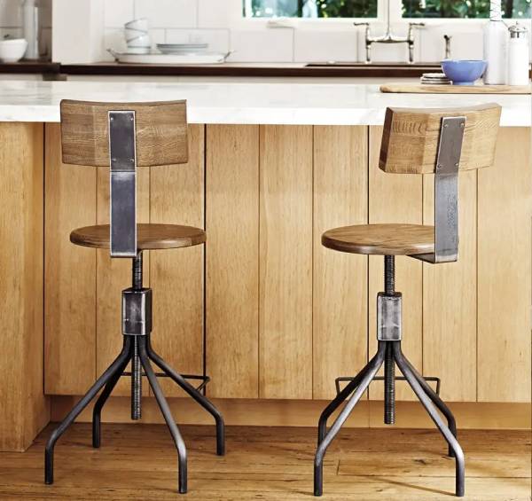 Anda juga membutuhkan kursi makan yang cocok. Kursi makan berbentuk bulat dengan kaki segitiga yang memanjang dan tinggi bisa menjadi pilihan yang bagus.