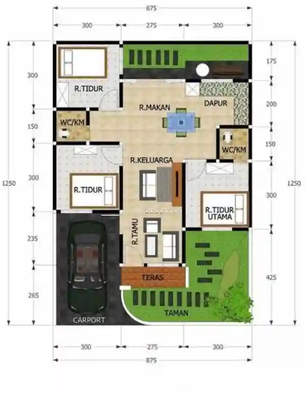 1. Apakah rumah ukuran 7×9 cukup untuk 3 kamar tidur?
